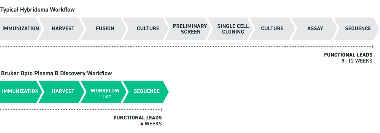 The hyperimmune response of the DiversimAb mouse can generate appropriate titers in as little as three weeks, enabling rapid antibody discovery. Twist’s B-cell screening on the Beacon platform and the optimized Hybridoma development workflow enables the high-throughput discovery of large, diverse sets of antibodies on a timeline unimaginable a few years ago. Days after tissue collection, the Beacon provides a rich data set about each antibody screened to identify the rare, active, cross-reactive mAbs and VHH antibodies ideal for clinical development.