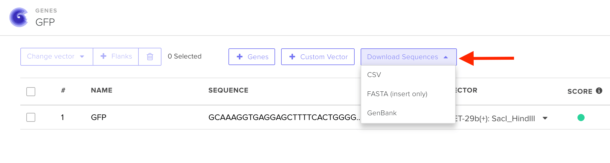 If you are placing a clonal gene order using a Twist or Custom Vector, we highly recommend that you double check the sequence of the final construct using the Download sequences button in the designer: