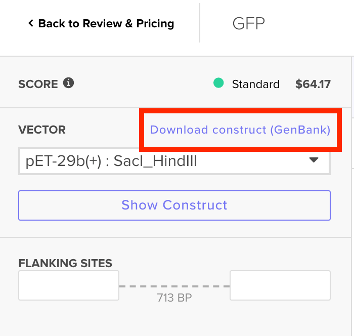 After inputting your insert into the designer and selecting your custom vector, download the final construct sequence from the Twist website.