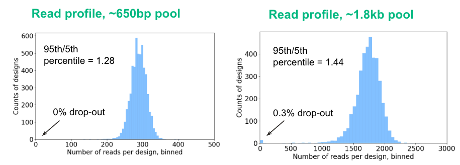 • Our pooled gene assembly platform has no limitations on homology in sequence design, build exactly the sequences you desire in a single pool.