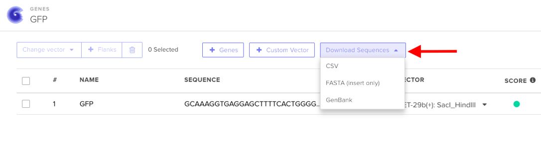 After submitting your gene sequences on our website, they will be automatically scored for feasibility of assembly: